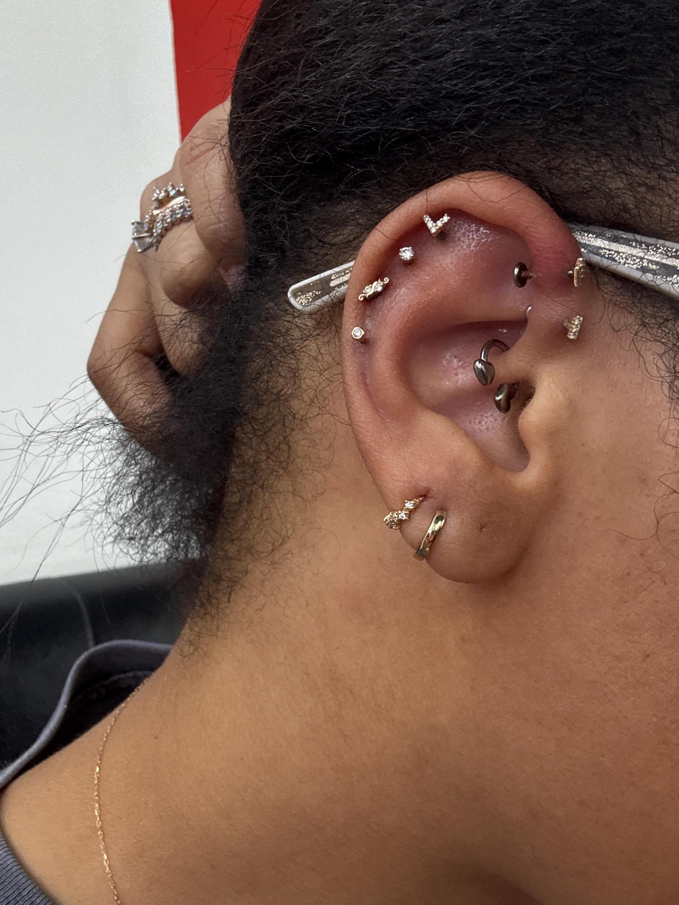 I wear it on my second love piercing and it’s a great different from the other earrings i have because of its shape