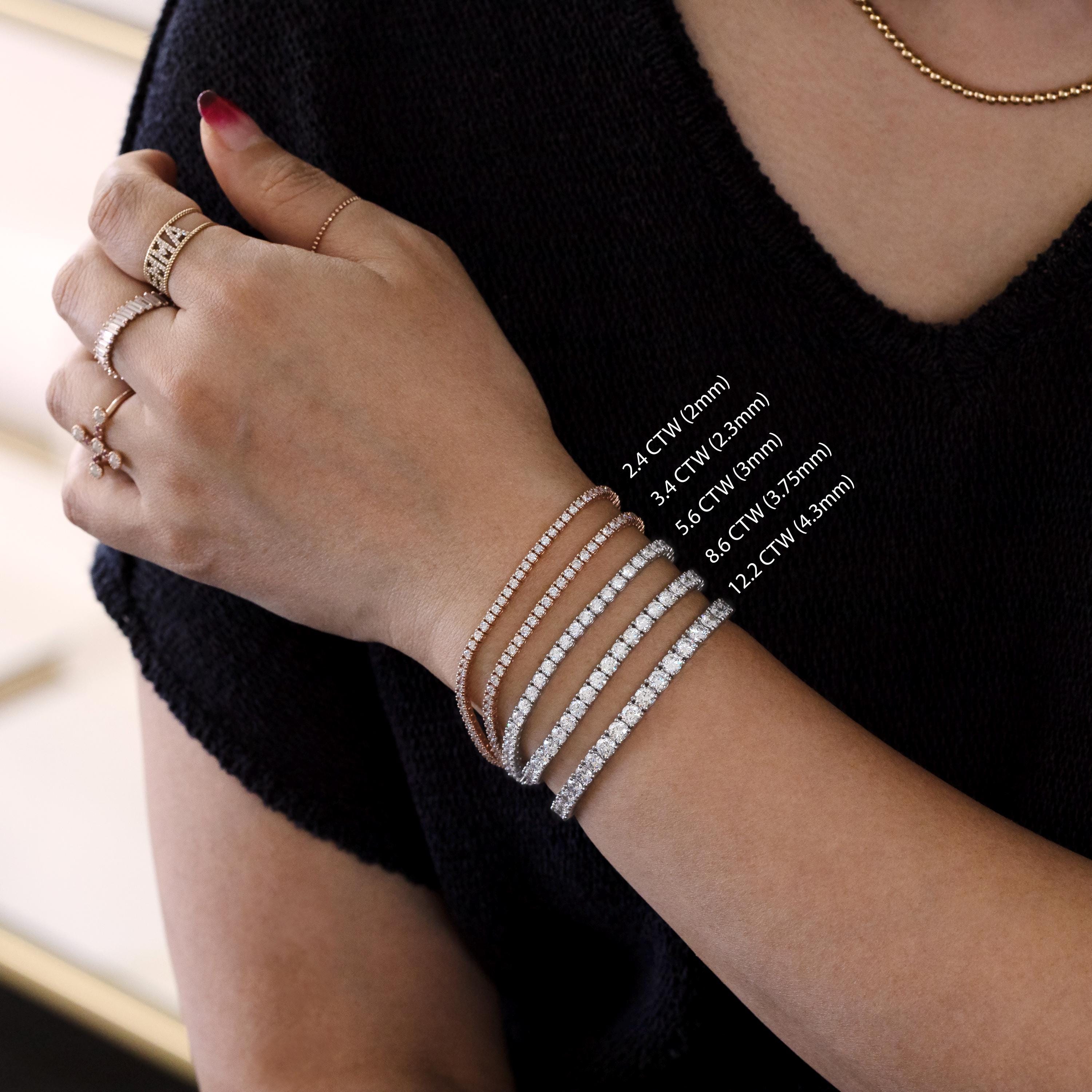 Because tennis bracelets contain diamonds along the entire length, carat weight may vary slightly for different bracelet sizes.
