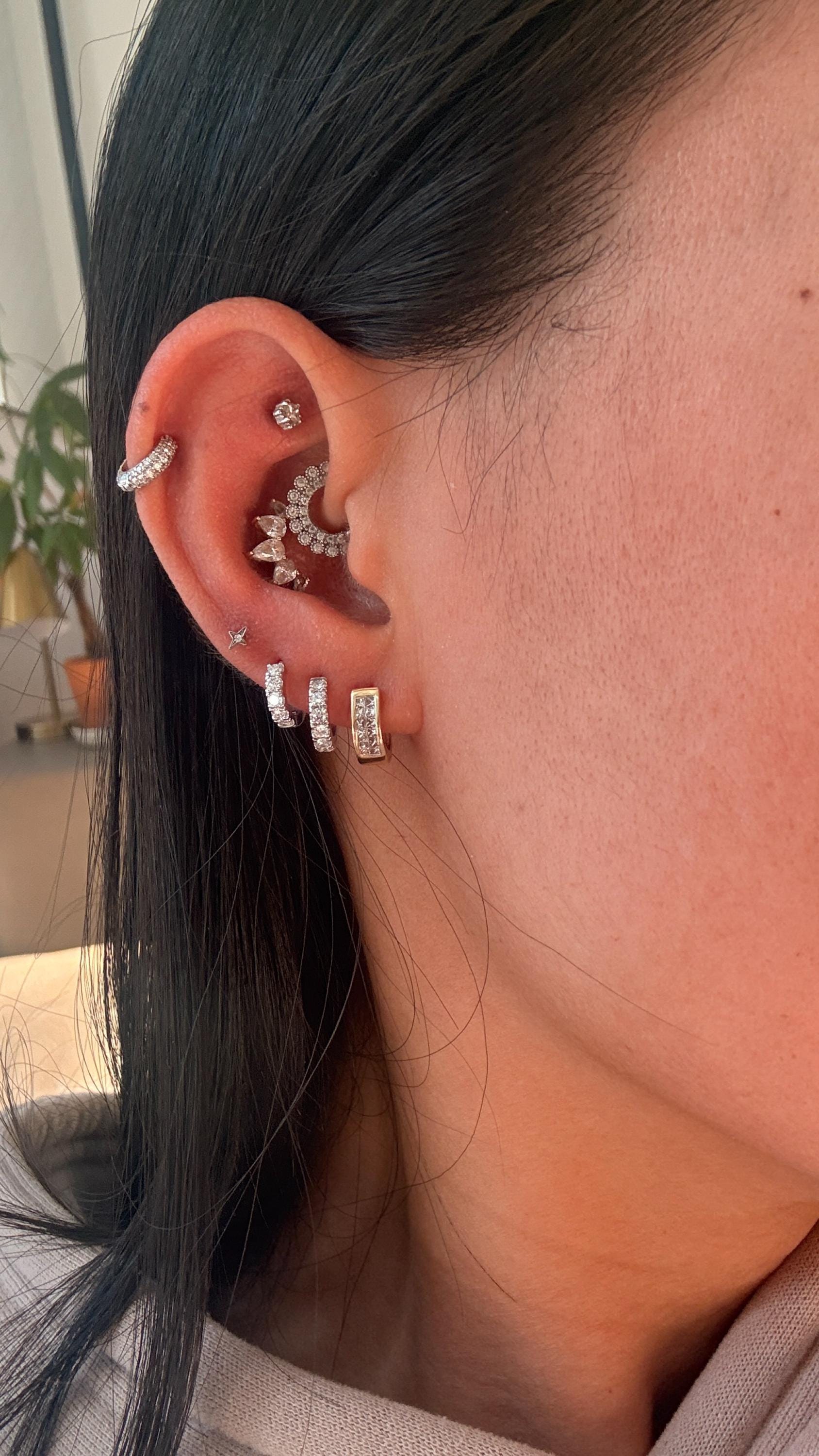 Beautiful huggies that are actually small enough for my tiny lobes but have a relatively substantial width. Shown here in my third lobes…perfect size and will definitely be ordering more!